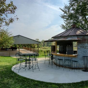 Front Porch Vineyards is a beautiful venue surrounded by vineyards. It is the perfect location for your office outing, bridal shower, reunion or even birthday party. There is ample parking and room for 90 guests. The unique grain bin bar and covered pavilion overlooking the lake and grapevines will make any gathering special.